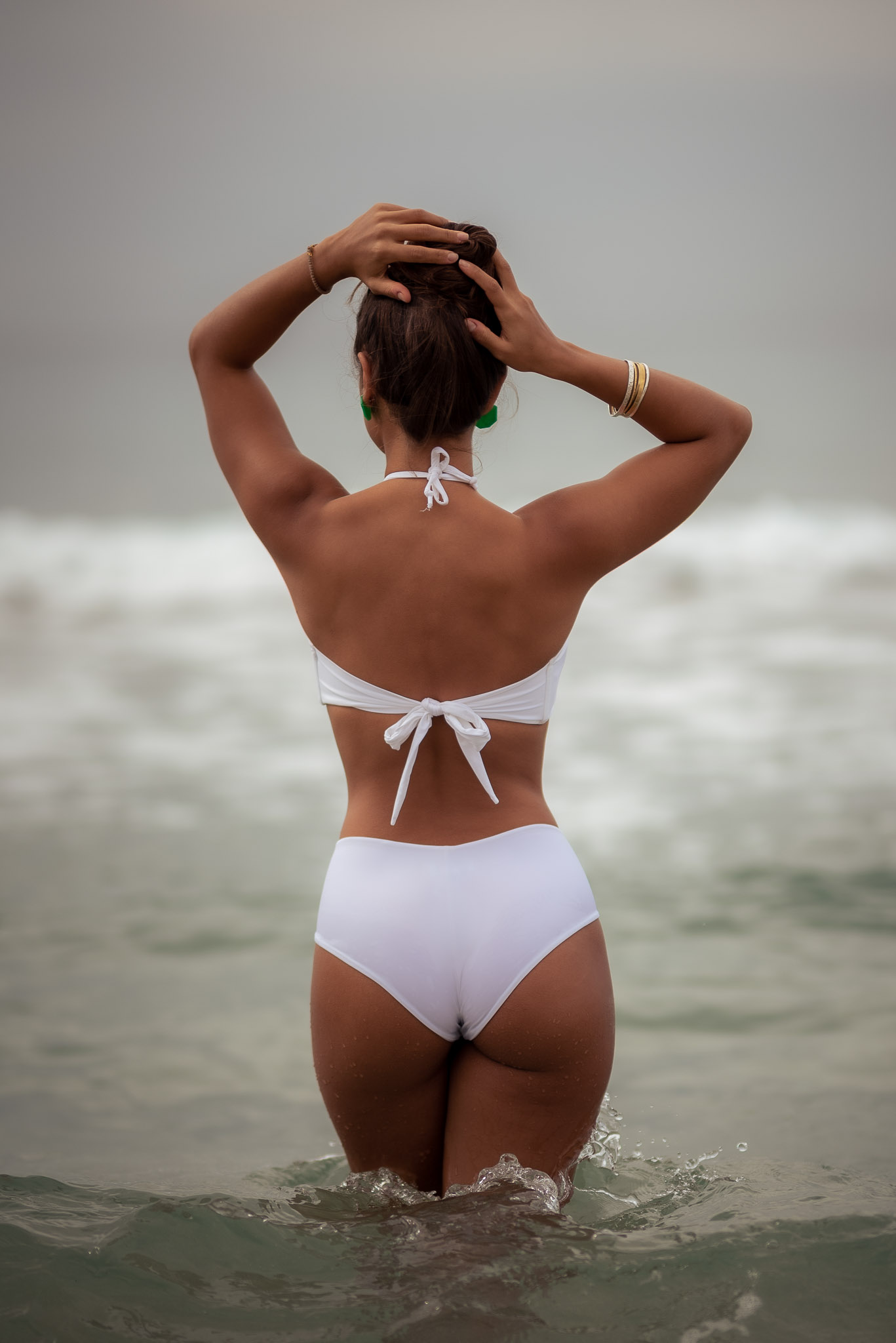 Μπικίνι λεύκο με ενίσχυση που αφέριττε και δέσιμο στο λαιμό